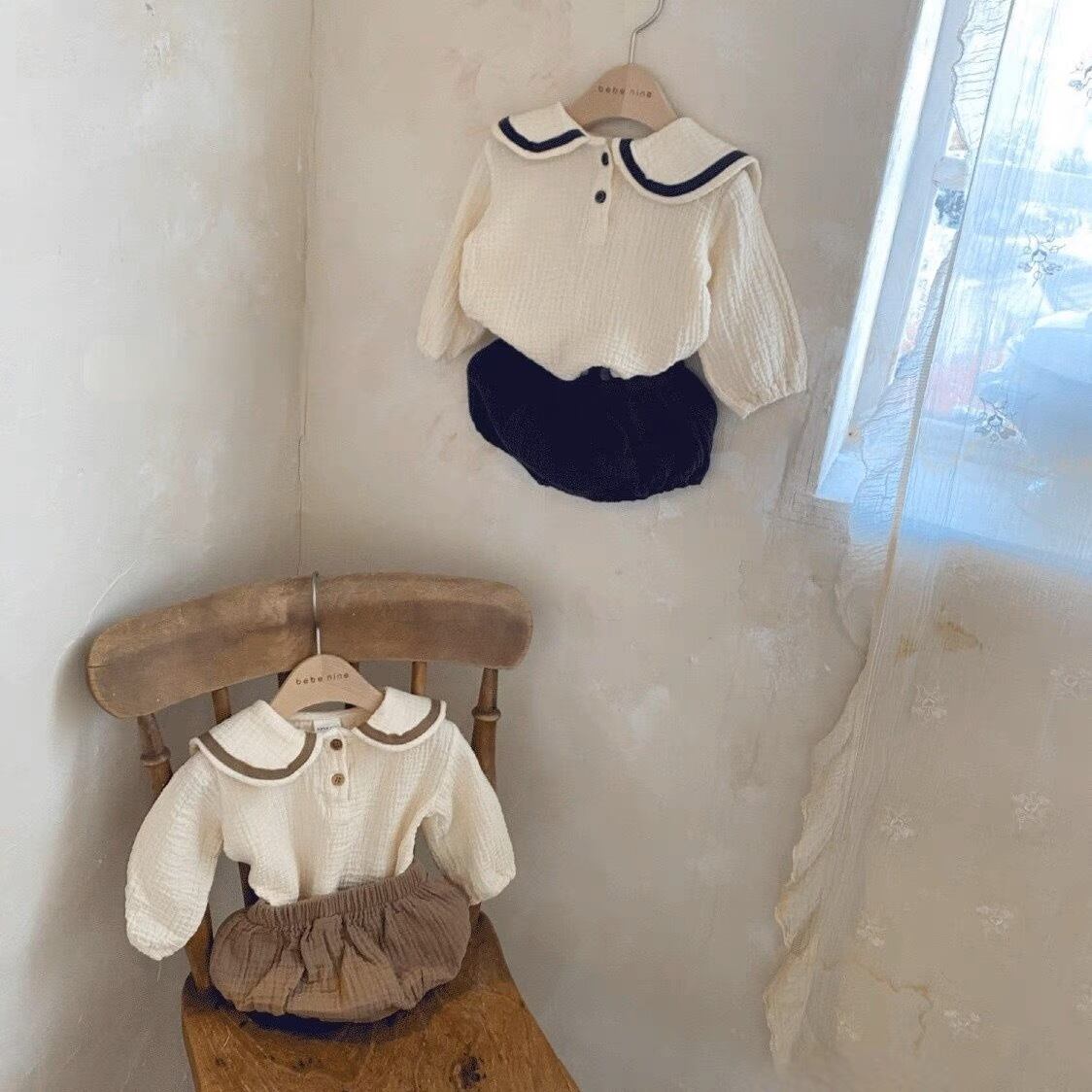 セーラーカラーが可愛いベビー用トップスとパンツがセットになった大変お得なアイテムです♡